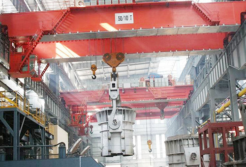 Overview Steel plant casting overhead crane used in meltshop is one of the key equipment of steelmaking process, mainly used for hot metal charging to the converter in the converter mill, and will hoist the ladle to the continuous casting large slewing platform in hot metal receiving workshop or to refining converter in refining workshop.